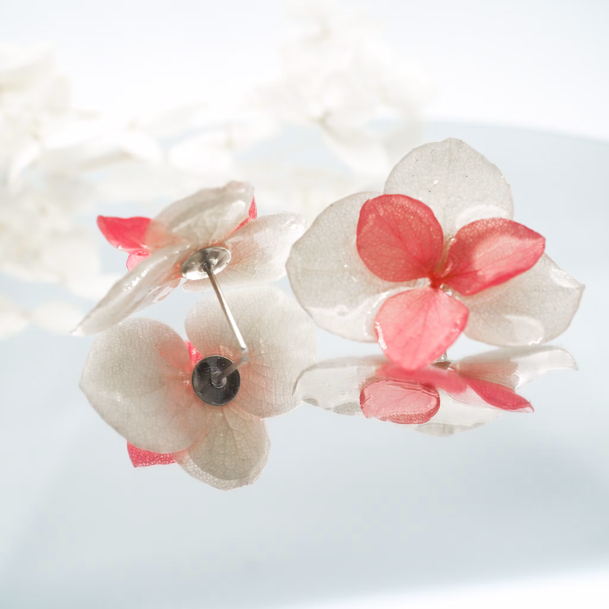 Hortensia Alv Amplia- Øresmykker i Kremhvit og Rosa -Laget av Ekte Tørkede Hortensiablomster og Ørestikker belagt med Ekte Sølv