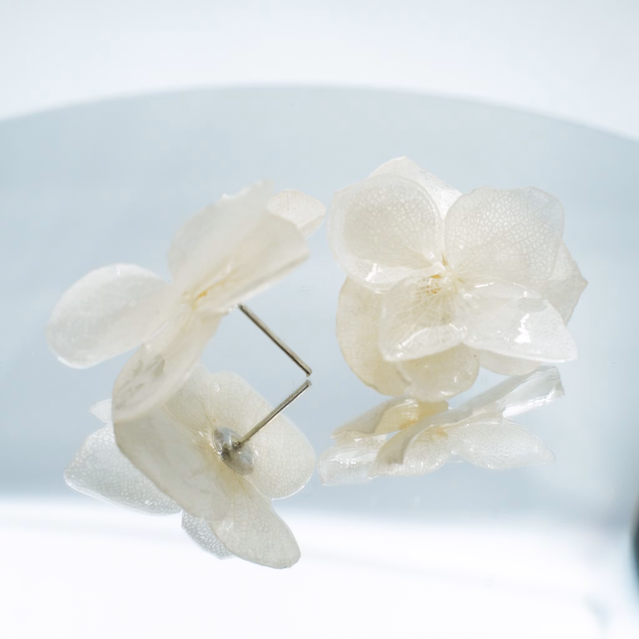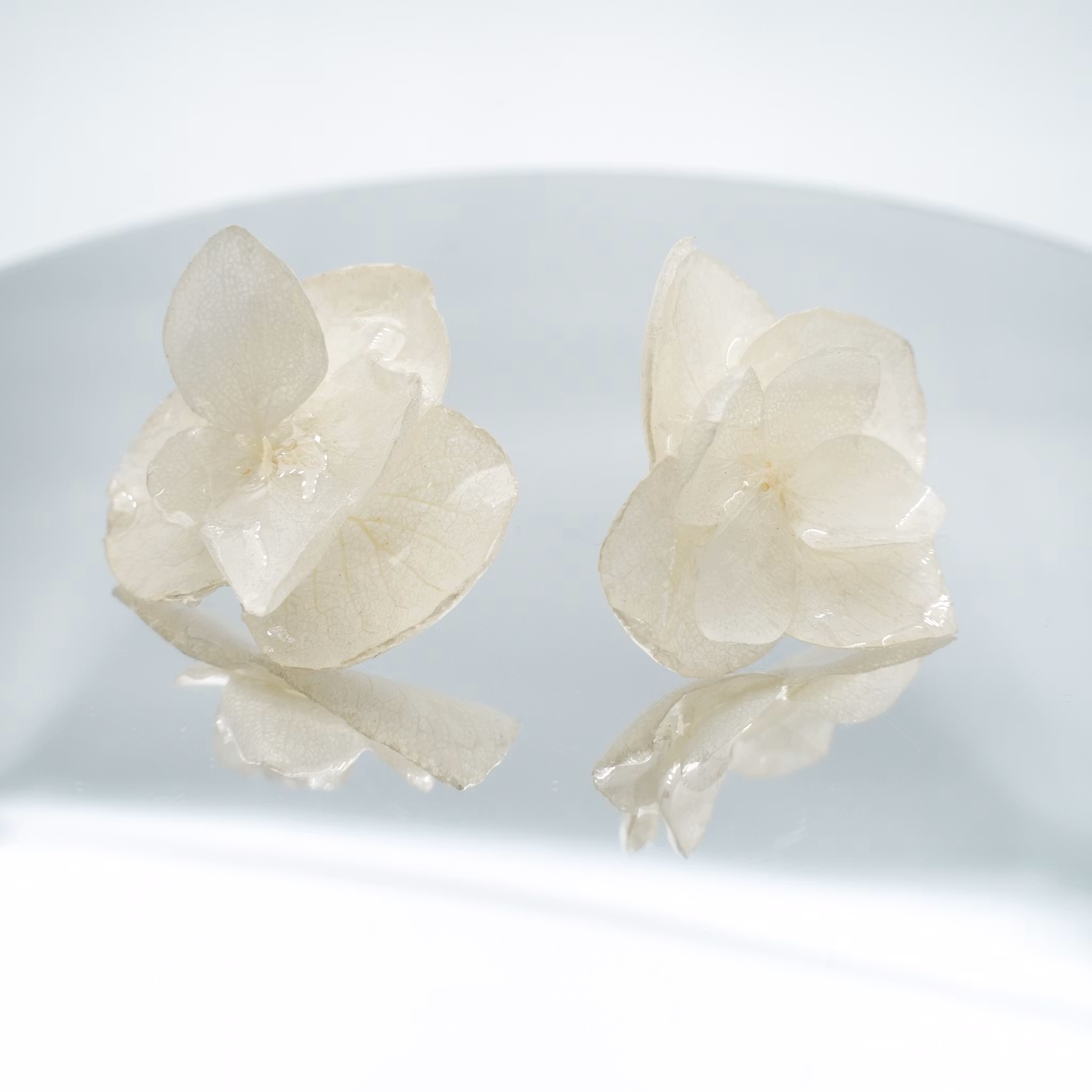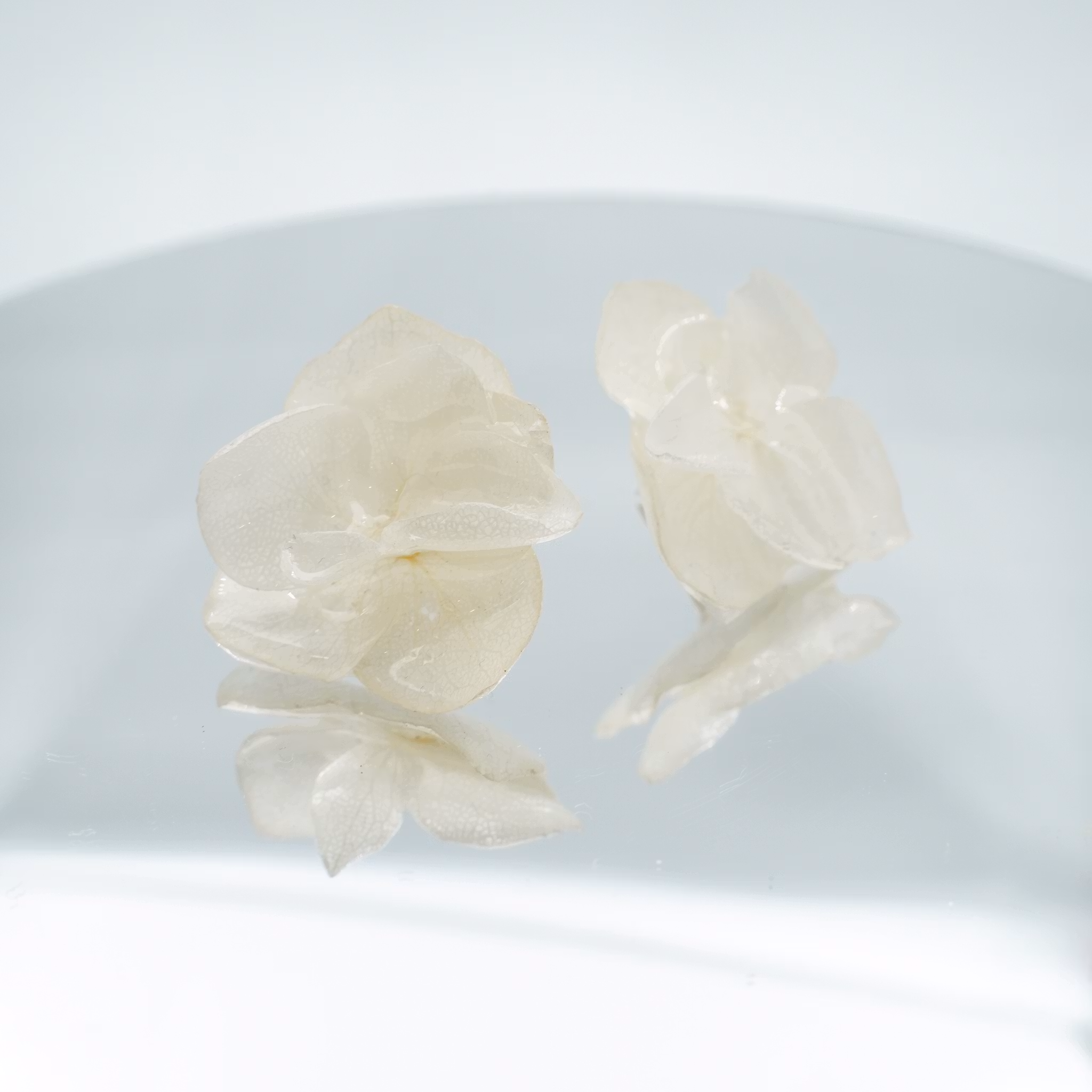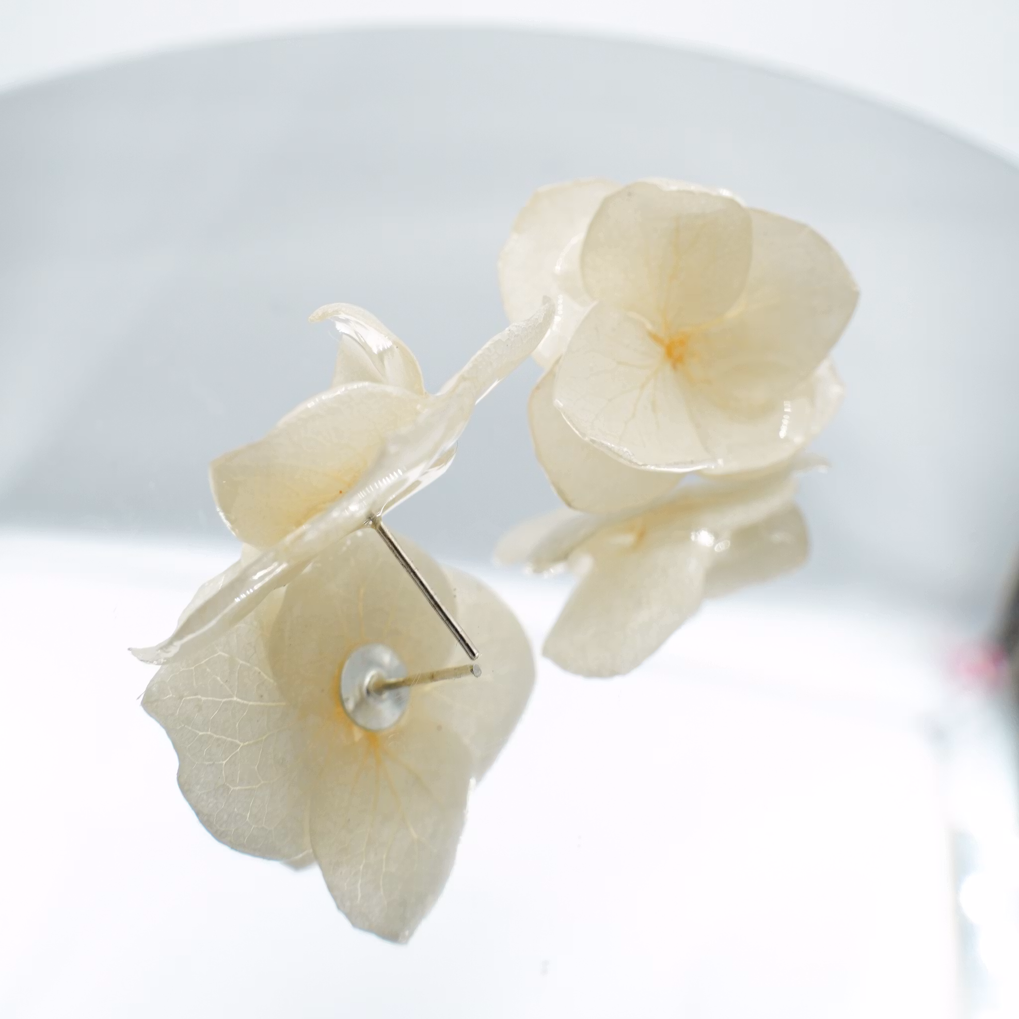 Hortensia Alv Amplia Kremhvit– Øresmykker Laget av Ekte Hortensiablomster