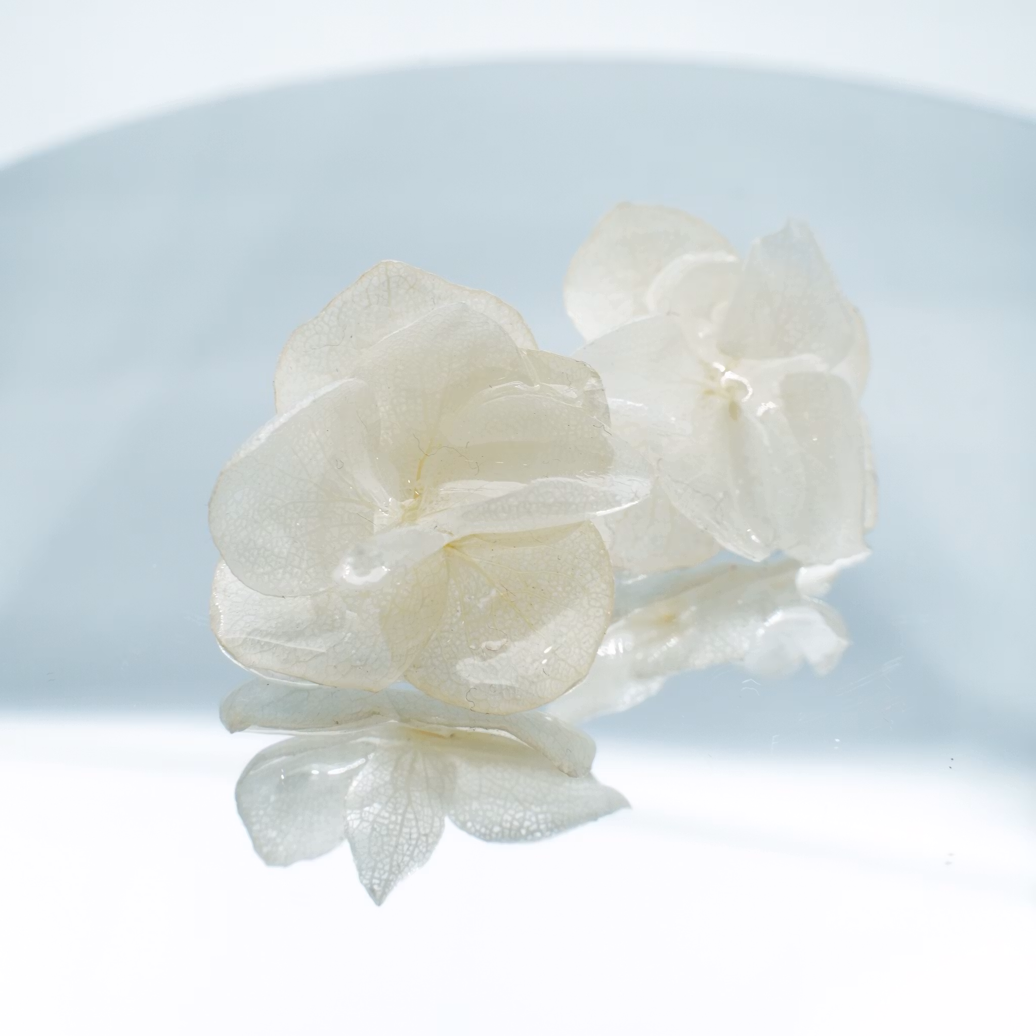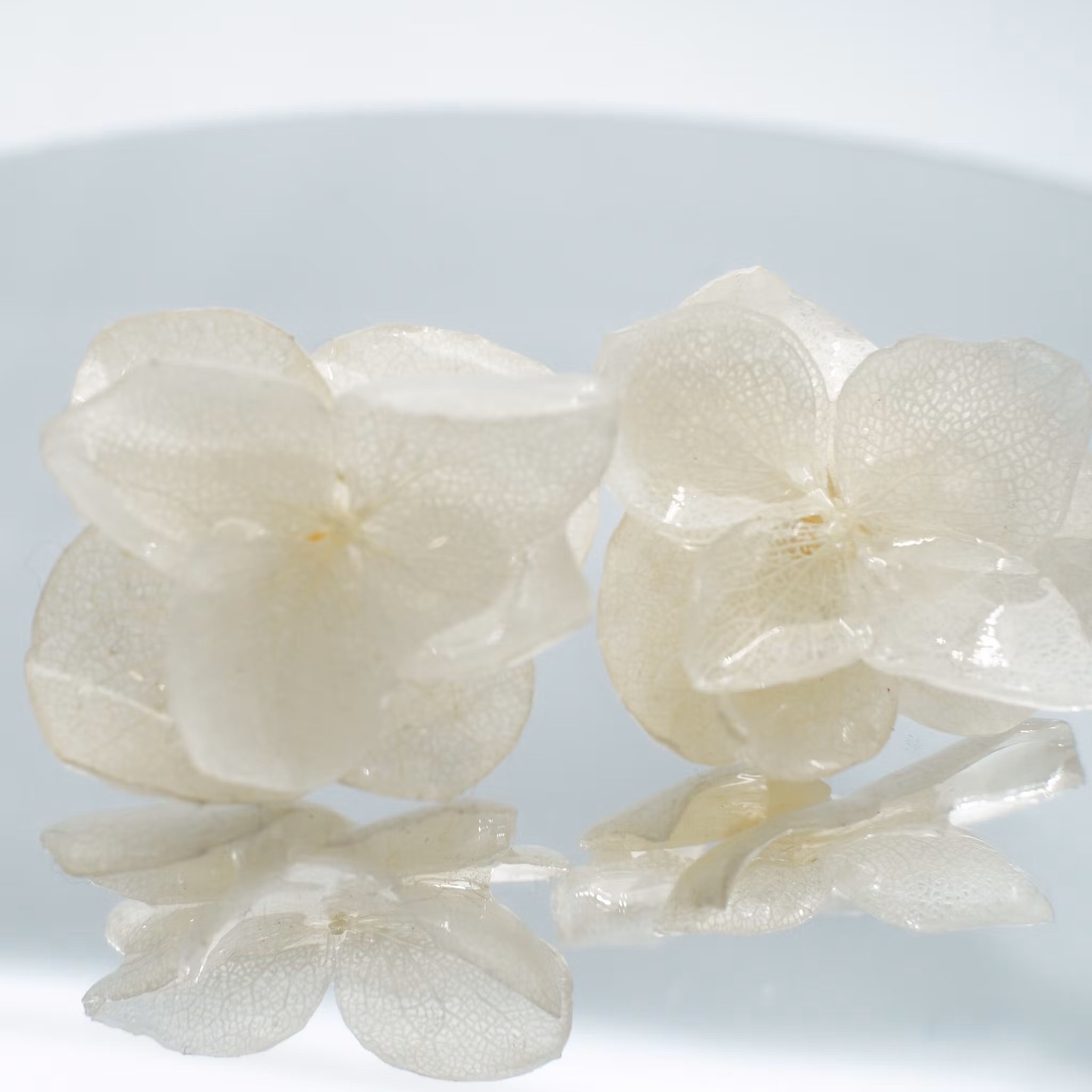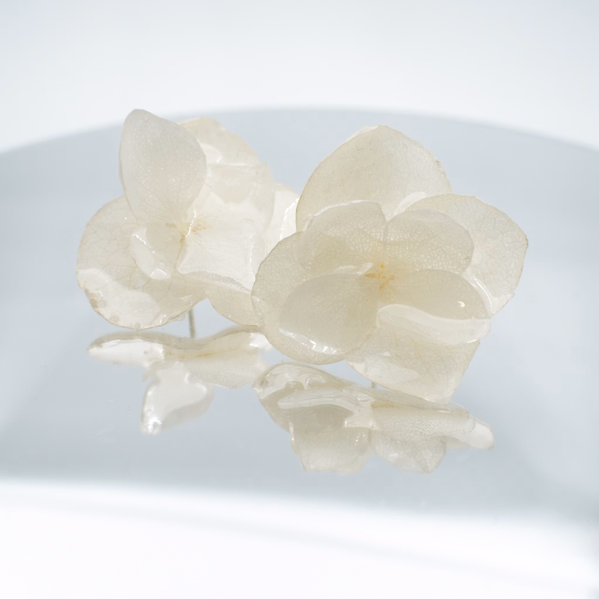 • Ekte hortensiablomster, preservert i UV-resin