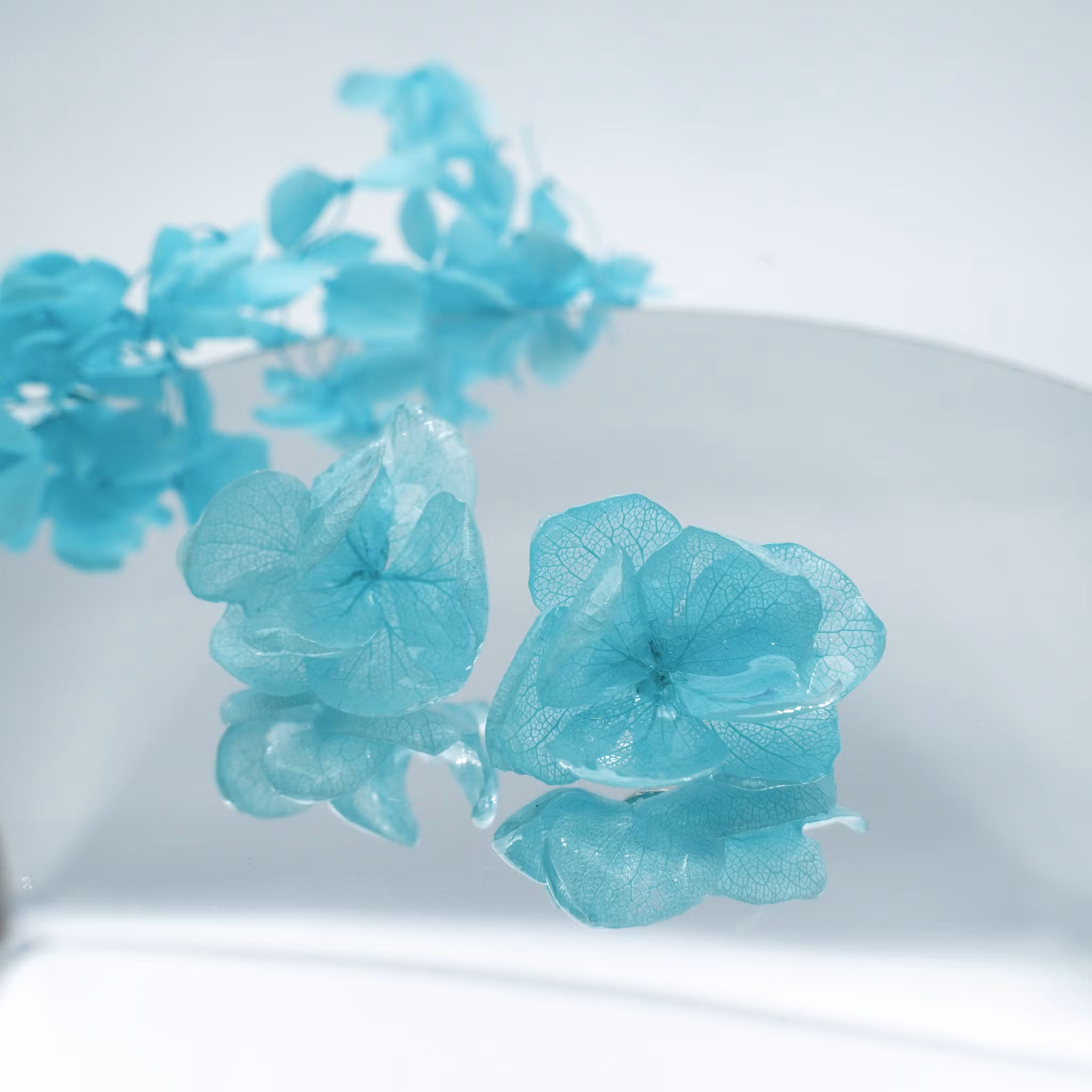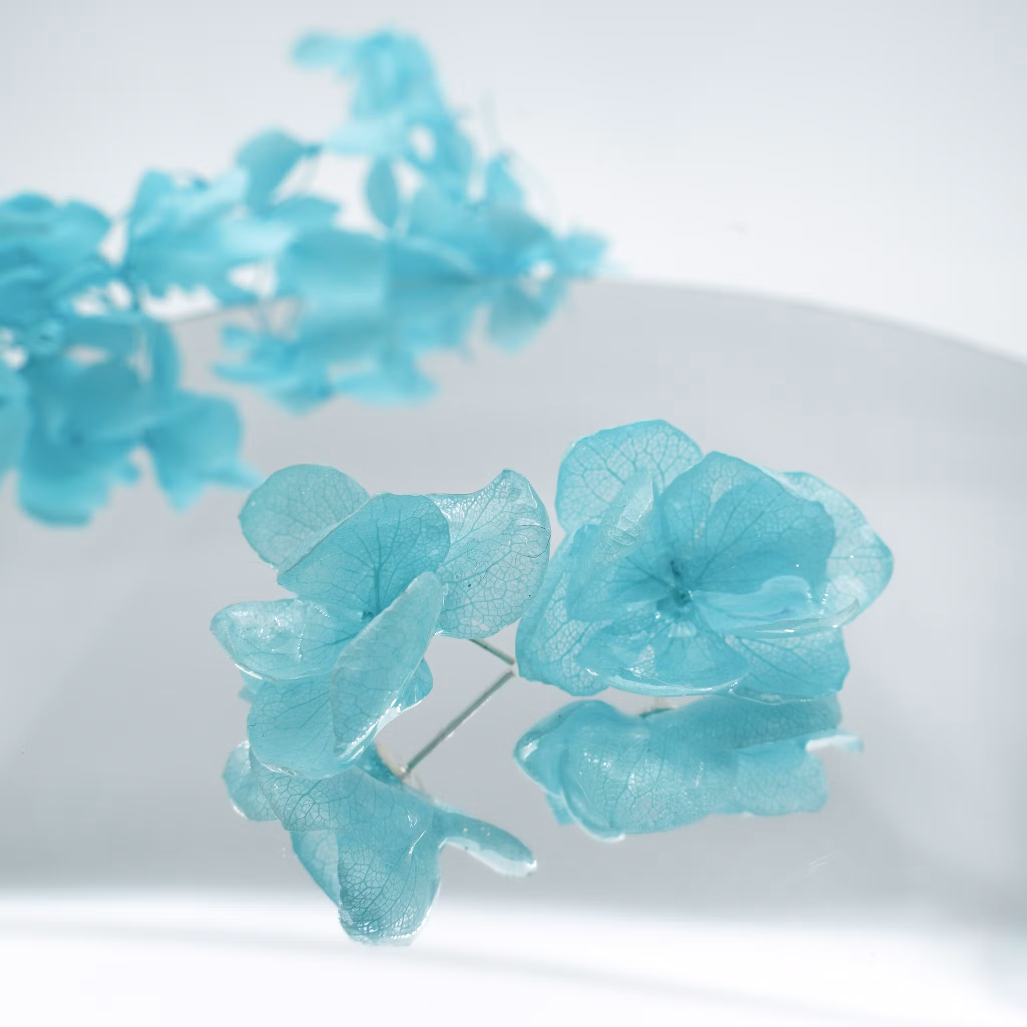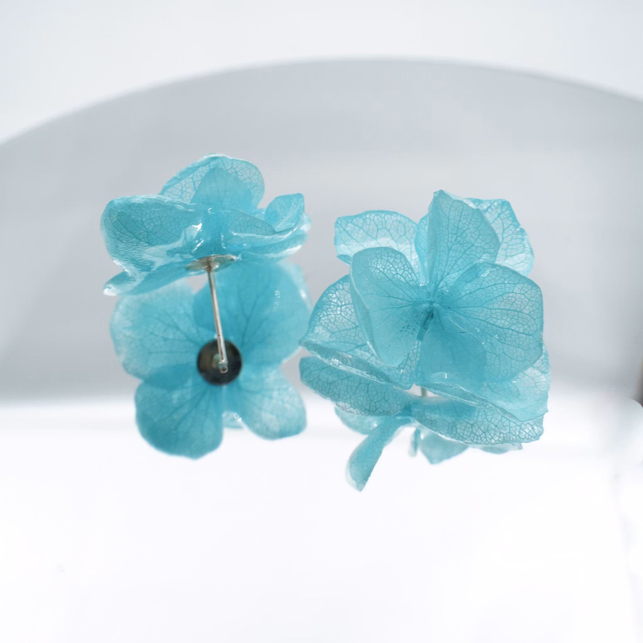 Hortensia Alv Amplia Turkis– Øresmykker Laget av Ekte Hortensiablomster