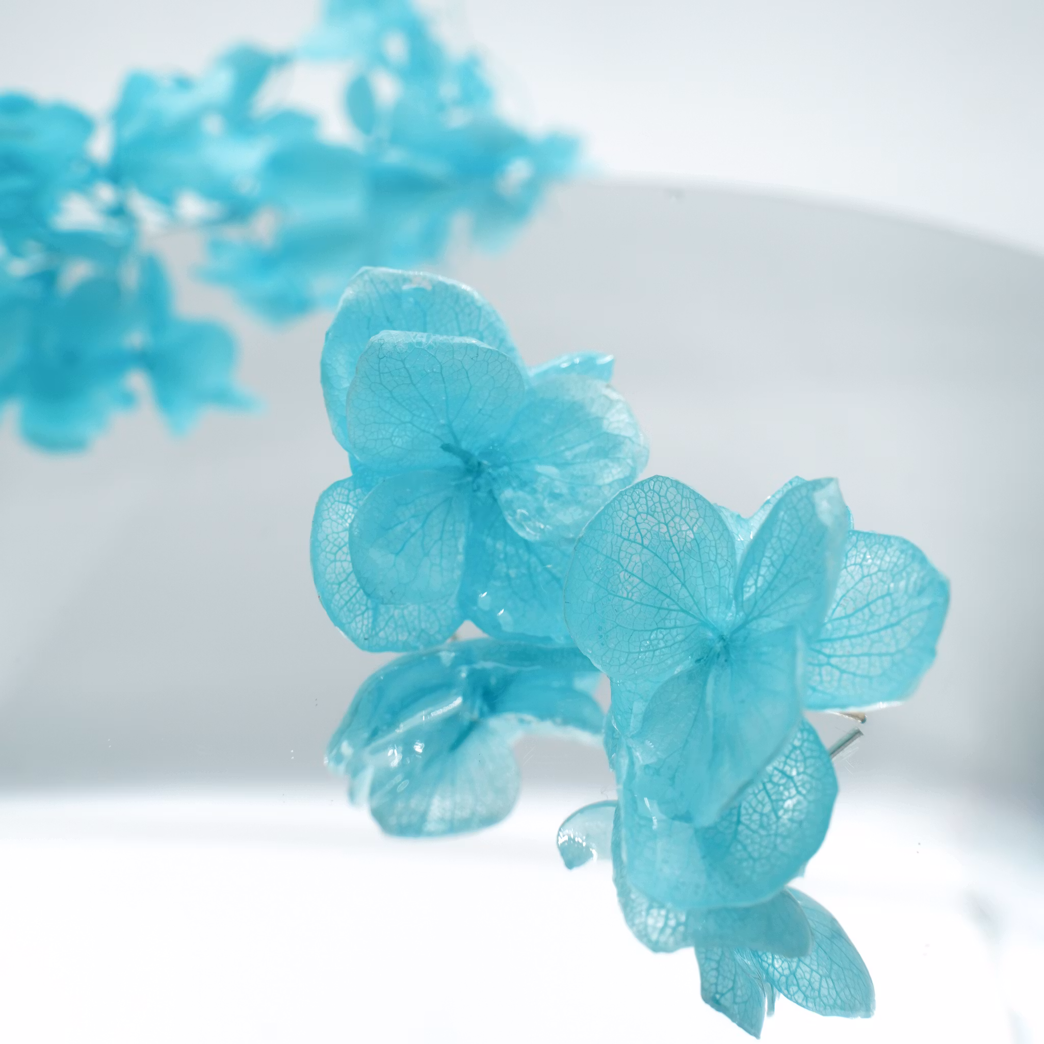 • Ekte hortensiablomster, preservert i UV-resin