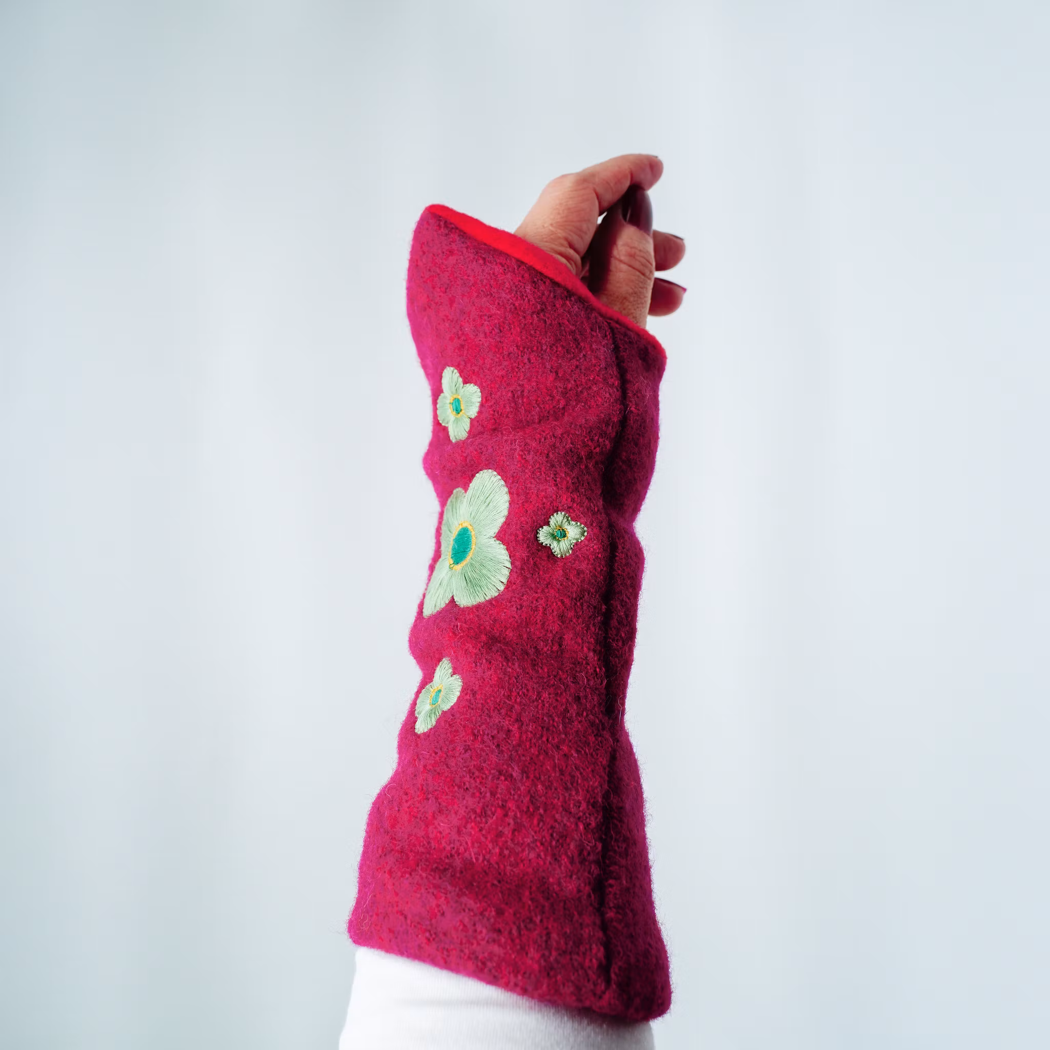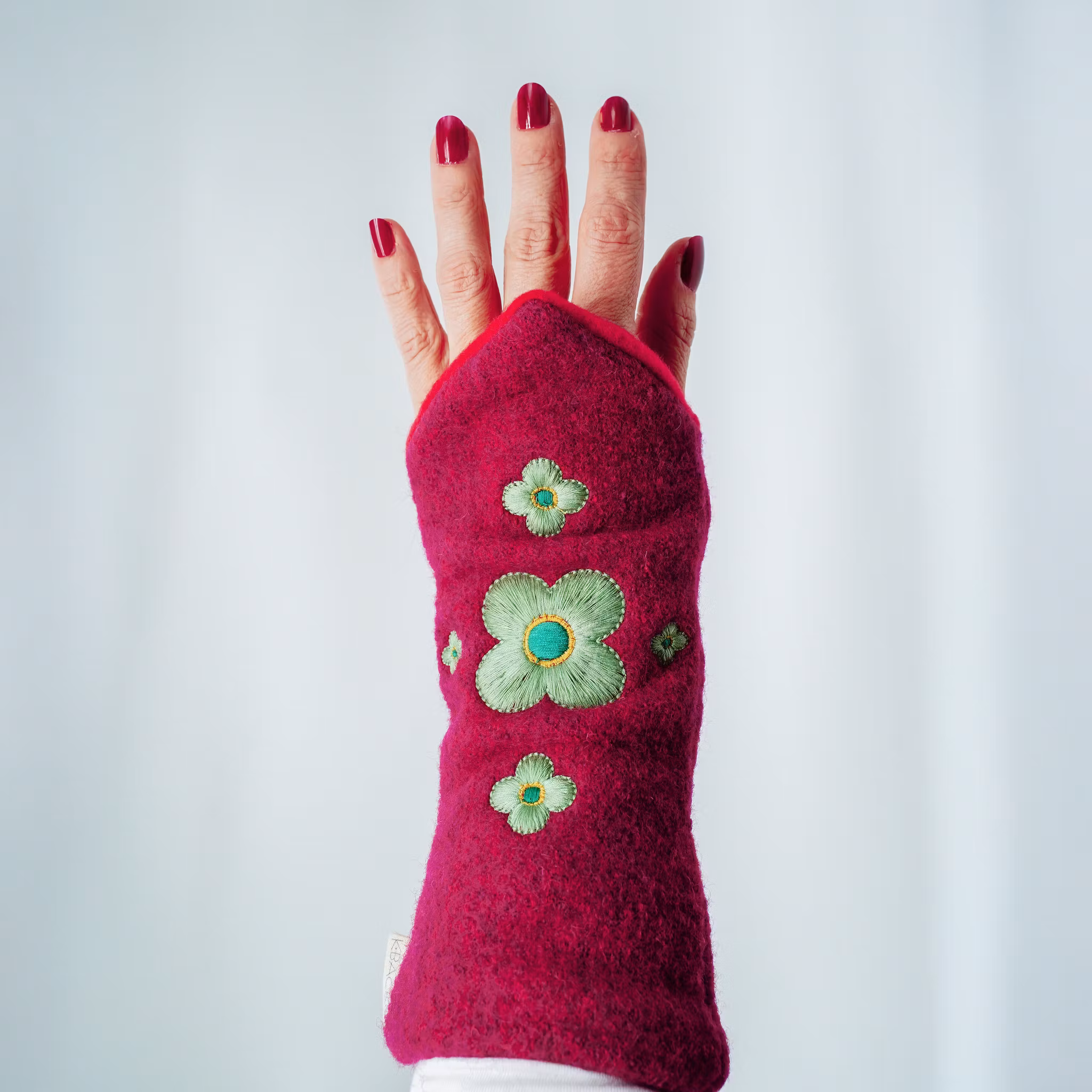 Disse pulsvarmerne er laget for deg som trenger varme til hendene når kulda setter inn. De er håndlaget av ull med mykt fleecefôr, og dekorert med broderier som skiller seg ut.